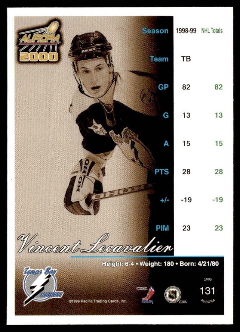 2000-01 Pacific Aurora Vincent Lecavalier Tampa Bay Lightning #131