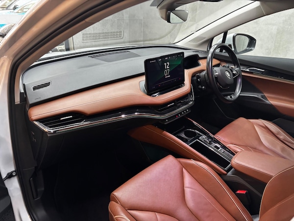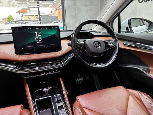 This 2022 Skoda Enyaq 60 is a superb example, having had only one owner since new. As a fully electric vehicle, it offers a smooth and quiet driving experience, powered by a 62 kWh battery that provides a maximum range of 256 miles when fully charged. Recharging at home using a 7kW charger takes approximately 9 hours and 30 minutes, while rapid public charging can take you from empty to 80% in just 58 minutes. This Enyaq comes equipped with essential features including basic LED headlights with daytime running lights, Wireless Smartlink for seamless Android Auto integration, and Skoda Connect iV Remote Services allowing you to control the air conditioning remotely. The Light and Rain Sensor automatically adjusts headlights and the rear view mirror, while Bluetooth connectivity ensures easy hands free calls.The Skoda Enyaq 60 stands out with its generous boot space, offering ample room for all your luggage and shopping needs, making it a practical choice for families and everyday life. Its electric powertrain and impressive range mean you can enjoy longer journeys with fewer stops, and the efficient charging options make ownership convenient. The inclusion of features like Wireless Smartlink and remote climate control further enhance the user experience, setting this Enyaq apart from other electric vehicles in its class by providing a well rounded and user friendly package.