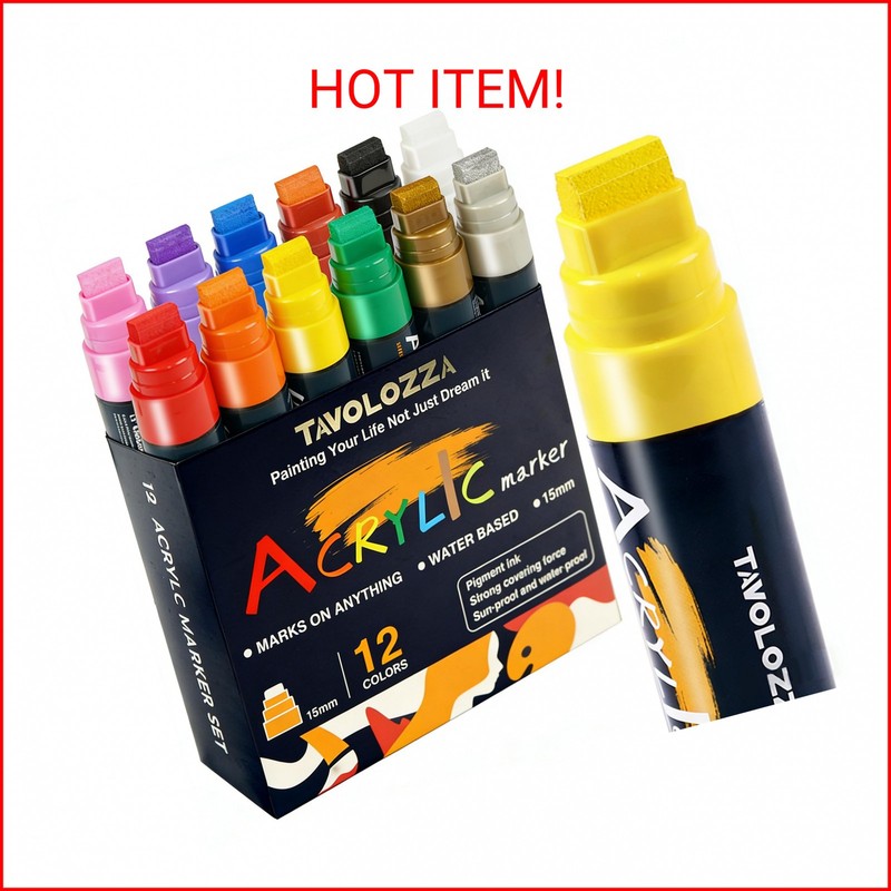 Jumbo Markers 12 Colors, Graffiti Markers-Include Gold Silver, 15MM Felt Tip Acrylic Paint Marker, Thick Jumbo Marker for Posters Board, Fabric, Canvas, Window, Wood, Teachers, Banner, Glass