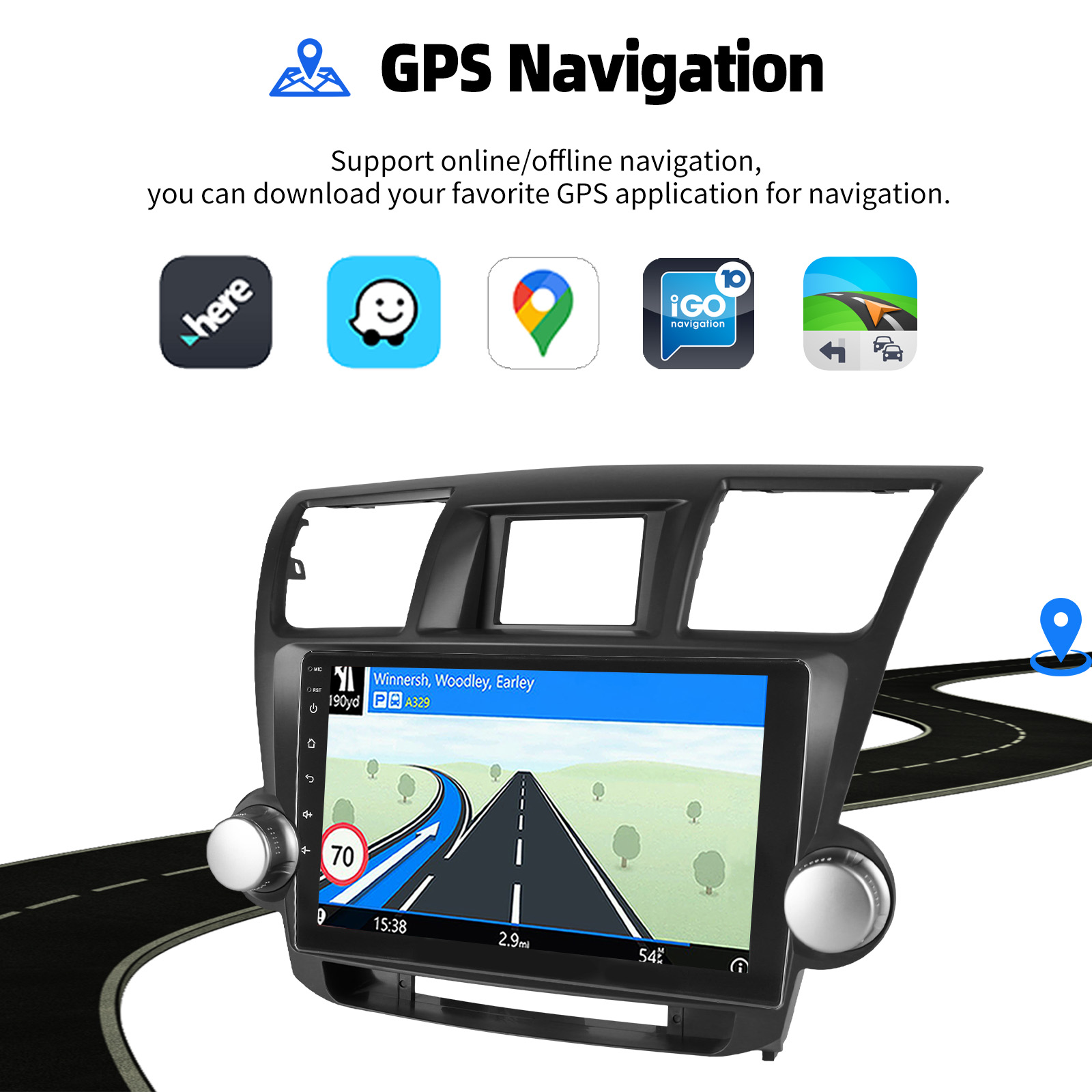 10 Inch Android 15 Car Radio For Toyota Highlander 2008-2013: The Android car radio with 10" 1280* 720 HD capacitive touchscreen, 2GB RAM and 32GB ROM allows you to download your favorite apps and videos, so driving is no longer boring. No extra frame, no cable change, plug and play.