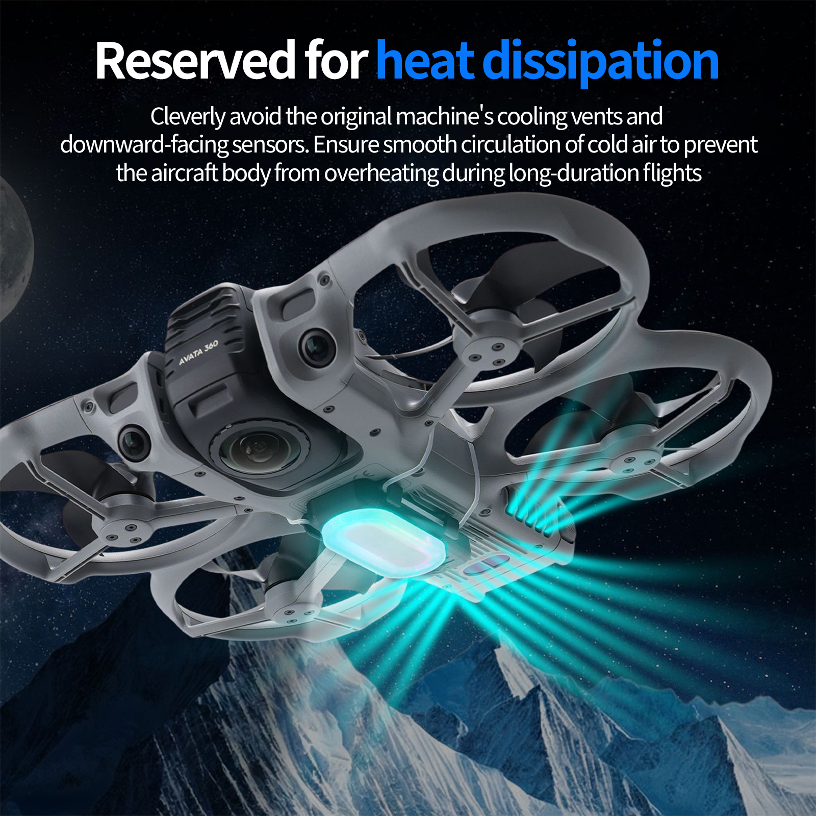 2. Designed with ventilation in mind, cleverly avoiding the drone’s original cooling vents and downward-facing sensors. Ensures smooth airflow to prevent the drone from overheating during extended flights
