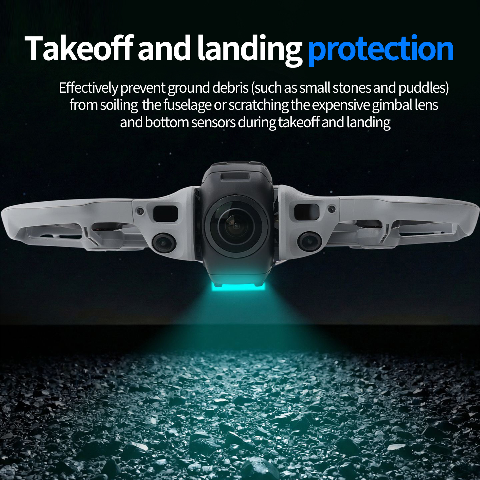 3. Takeoff and landing protection effectively prevents ground debris (such as small stones or puddles) from soiling the body or scratching the expensive gimbal lens and bottom sensors during takeoff and landing