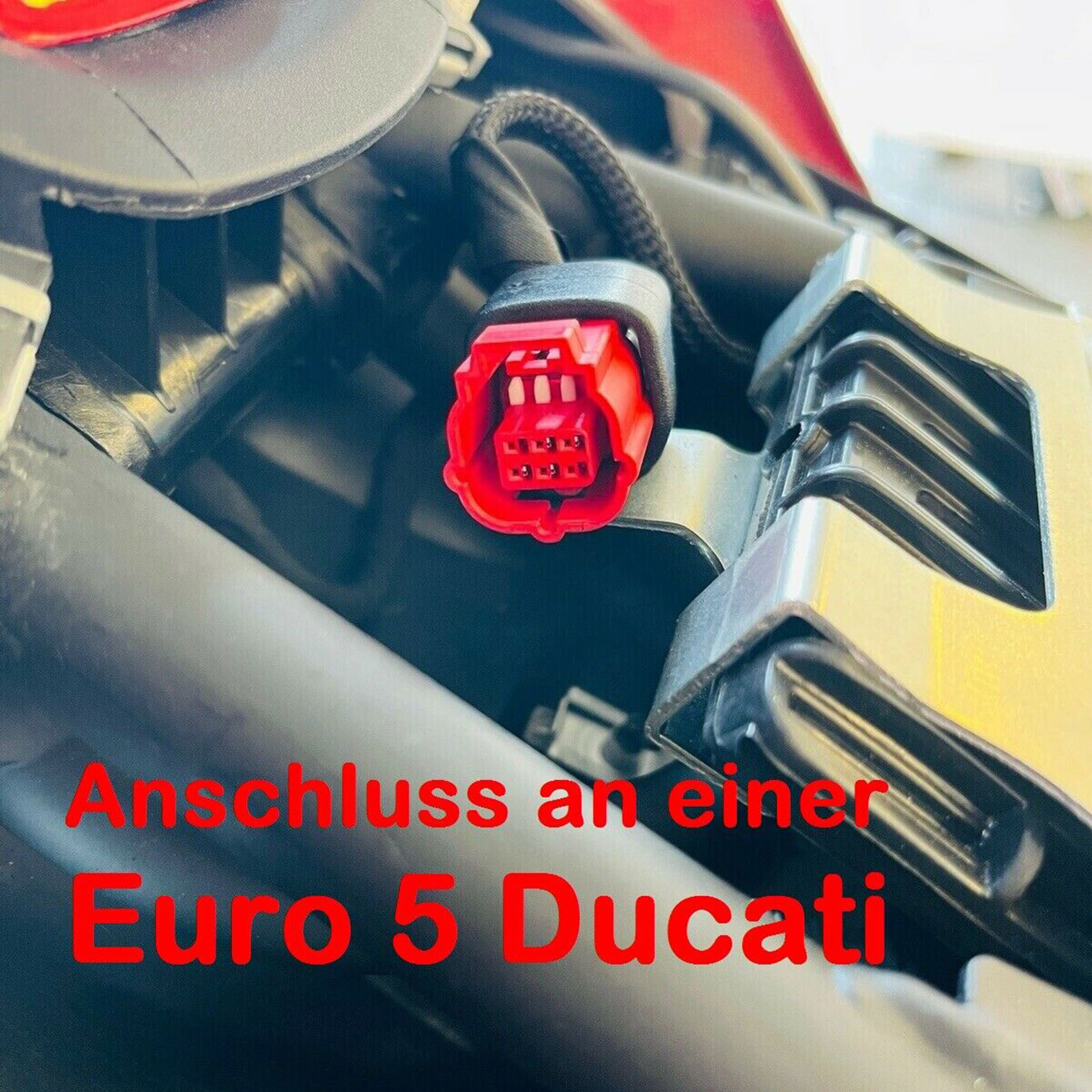 6-poliger Steckeradapter zur Verwendung bei Euro5 Motorrädern für Ducati, Moto Guzzi, Piaggio, Vespa, Honda, Yamaha, KTM, Kawasaki, Royal Enfield, F.B Modial usw. Dies ist ein neuer Steckertyp, der standardmäßig erstellt wurde (ISO / DIS 19689). Dieser Adapter wandelt einen standardmäßigen 16-poligen OBD2-Stecker in einen 6-poligen Stecker zum Einstecken in die Motorraddiagnosebuchse.