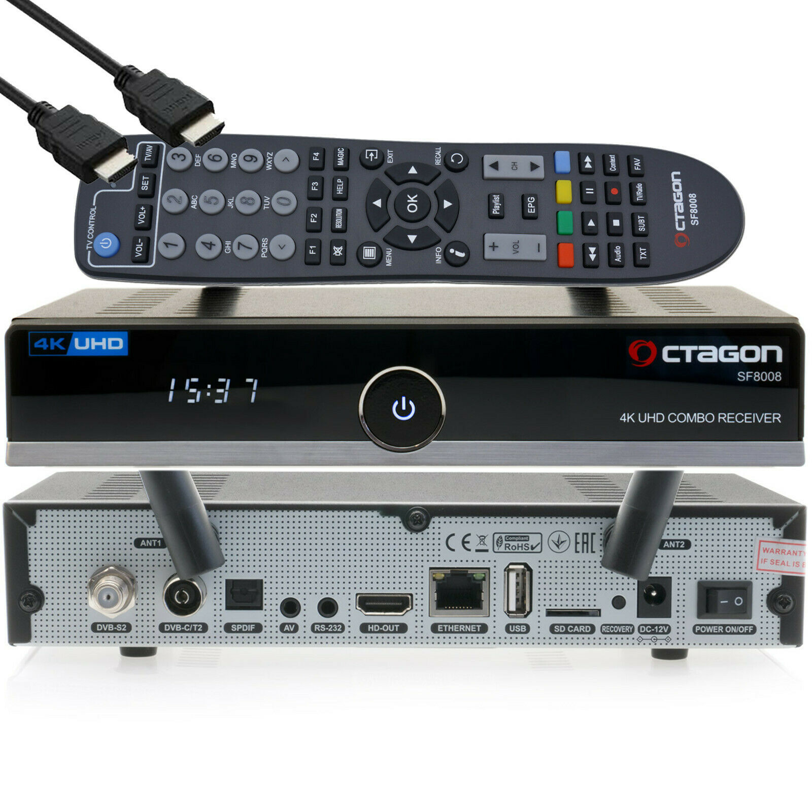 - 1x OCTAGON SF8008 4K SUPREME UHD E2 Receptor combinado Linux DVB-S2X y DVB-C/T2, negro