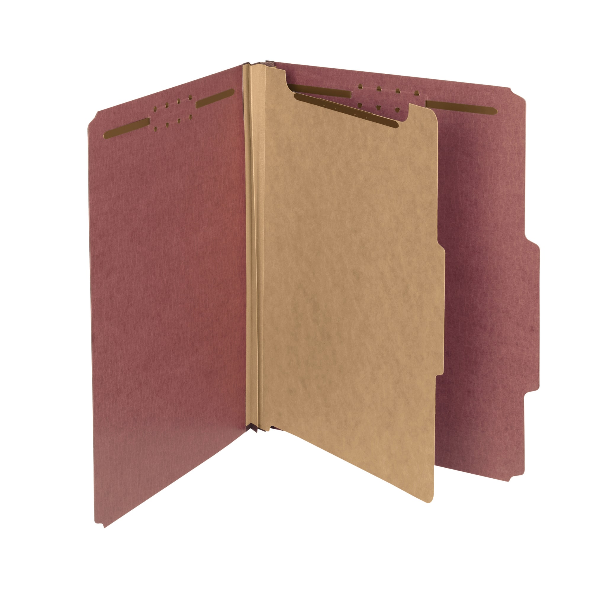Minimize the time you spend searching for documents and increase the efficiency of your filing system. Ideal for offices looking to become more sustainable, these classification file folders are heavy duty enough to make excellent project files while helping to divert waste materials from landfills. Durable pressboard stock helps ensure these classification folders with dividers will last. Dividers are made of 17-pt. fiberboard. Pressboard folders are tabbed 2/5 cut, right of center position. Divider tabs are 1/3 cut. Greener choice - contains 100% total recycled content with 30% postconsumer recycled content. Dividers contain 100% recycled content with 80% postconsumer recycled content. SFI Fiber-Sourcing Certified. Letter-size (8 1/2" x 11") folders with 1 divider make it easy to organize your documents. The red, 100% recycled box of 10 classification folders keeps your office stocked. Contains Recycled Content - See Specs for Details.