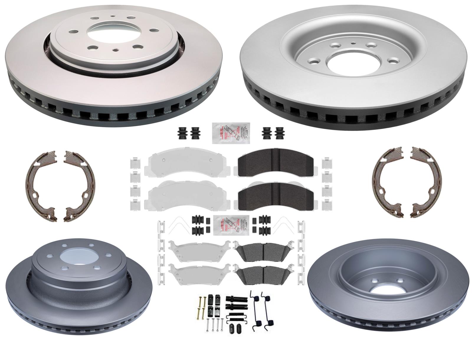 This Listing is for AME Master Brake Service Kit with Anit Corrosion GEO Coated Improved Performance Disc Brake Rotors and AmeriPro Disc Brake Pads, and Installation Hardware.