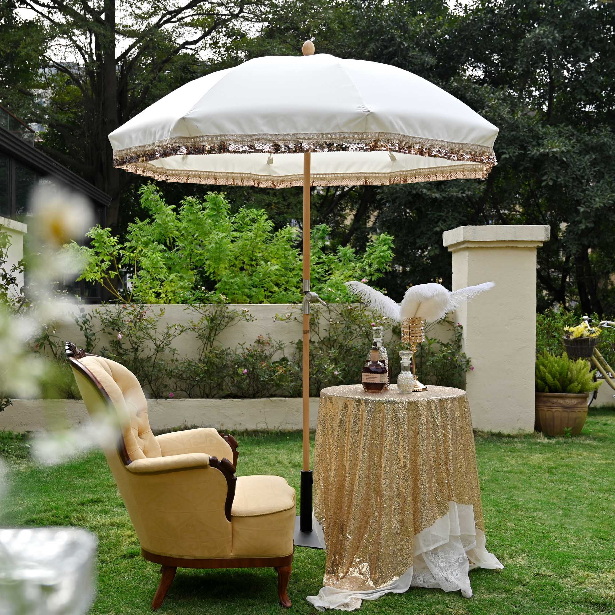 LAGarden 6 ft Jazz Age Style Umbrella Replacement Cover fits 6 ft umbrella with 8 ribs to change your old umbrella with brand new top cover, boasting its bold and lavish style with double-sided gold trim and rose gold sequins for bringing you back memories of 1920s glory and unrivaled beauty.