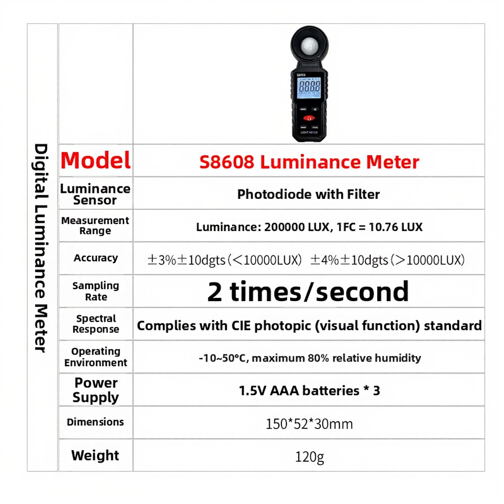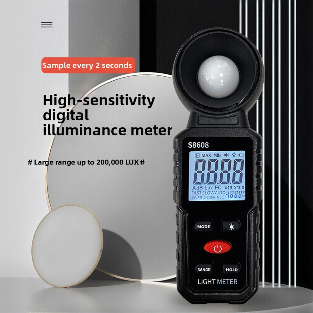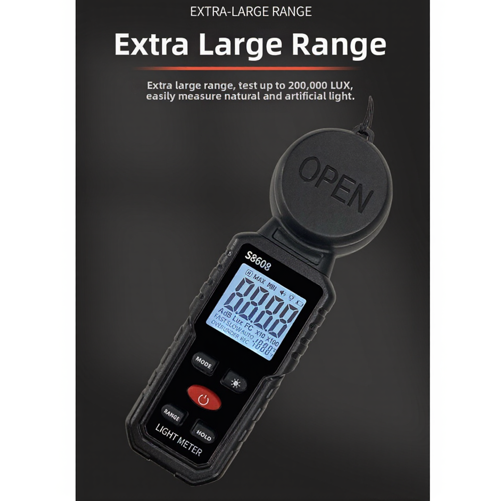 S8608 Digital Light Meter with 150x52x30mm Dimensions Black ABS Housing