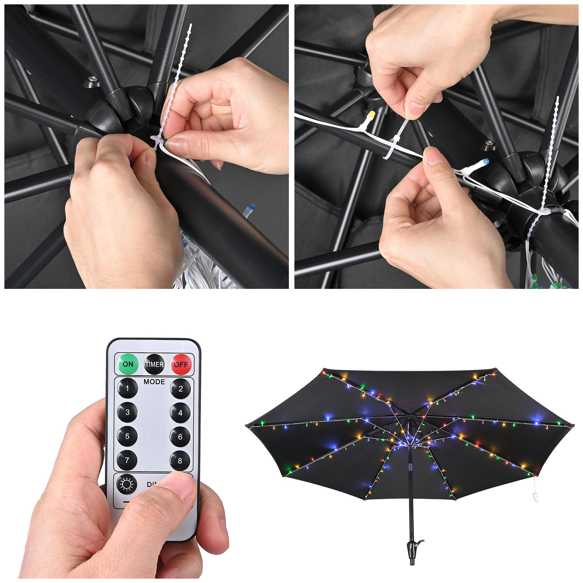 - Easy to Install - Comes with sturdy plastic zip ties for fixing strands onto umbrella ribs, easy to install with just your bare hands and it is ready to be used instantly