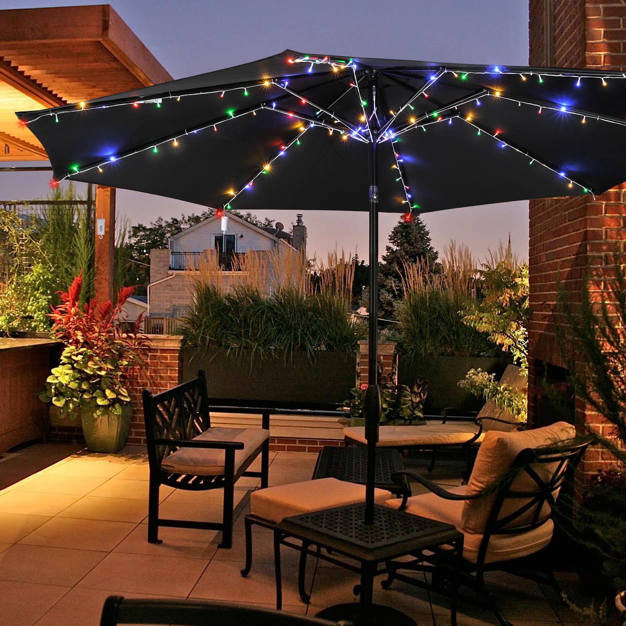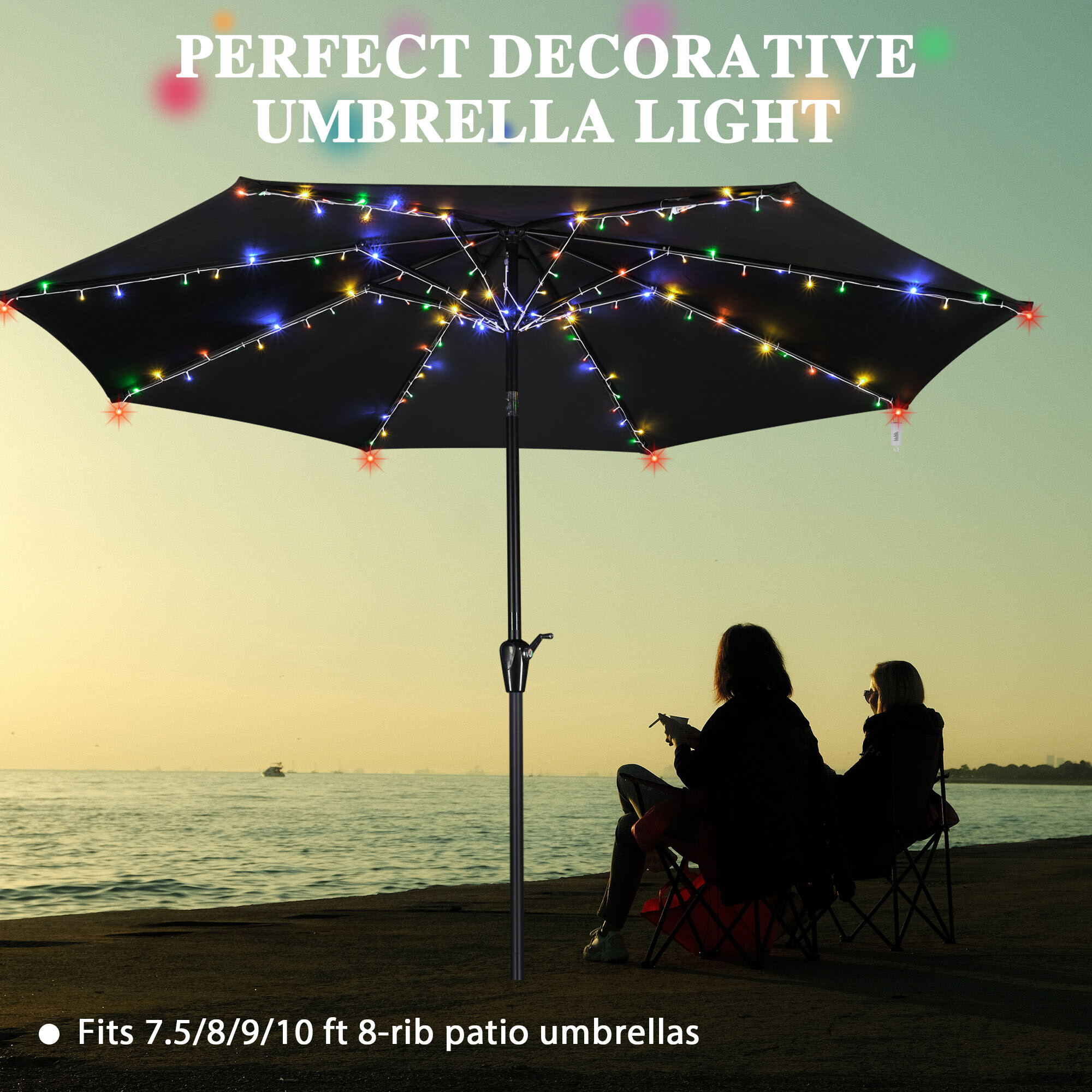- Perfect Decorative Umbrella Light - Universal Patio Umbrella String Light fits 7.5/8/9/10 ft outdoor patio umbrellas with 8 ribs, coming with 128 pcs multi-colored LED beads to illuminate your umbrella while creating a romantic ambience at night