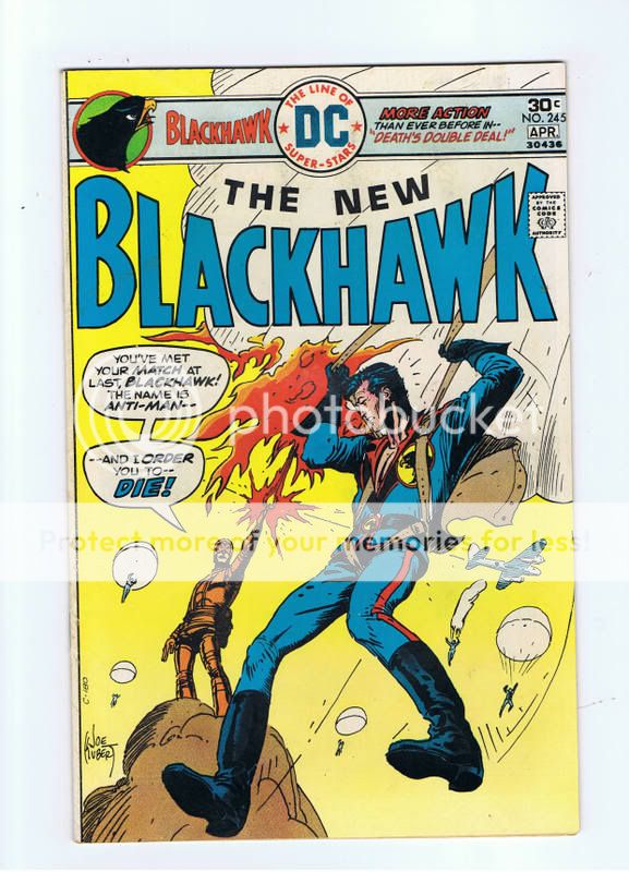 Bid with confidence with over 30000 comics soldDC Comics Blackhawk #245 Click to See Larger Picture of Front Click to See Larger Picture of Back Pages: 36 Publisher: DC #245 - Apr 1969 - Condition: Is in VG/F+ Condition. Some general wear. Some creases/marks. A bit dirty. Tiny tear at top and bottom of spine. Back Cover: Some creases. Dirty. Water stain across top edge. Inside: Pages Off White. Date stamped on first page. Overall a excellent copy of a rare comic. AUSTRALIAN BUYERS WISHING TO PAY BY BANK DEPOSIT PLEASE LET ME KNOW AND I WILL SEND THROUGH DETAILS REFUNDS I back my items and will leave positive feed back as soon as payment is confirmed. Not once you have left feed back similiar to some ebay sellers. IF there is a problem please contact me if you have a legitimate Gripe and if it is what you wish return the item and I will gladly refund your money. Why I back my grading skills (see feedback) I can make mistakes so please let me know if there are any problems.