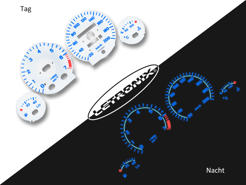 Mit unseren selbstleuchtenden Plasma Tachoscheiben der Marke Letronix, verleihen Sie Ihrem Tacho eine individuelle und exklusive Optik. Die Tachoscheiben werden 1 zu 1 gegen Ihre originalen Tachoscheiben ausgetauscht und der beiliegende Inverter wird einfach an Plus und Minus angeschlossen.