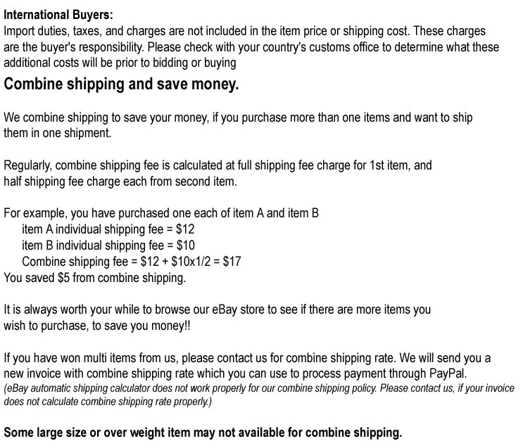 - All payments must be received within 10 days of the date the auction ended or you will forfeit your winning bid.