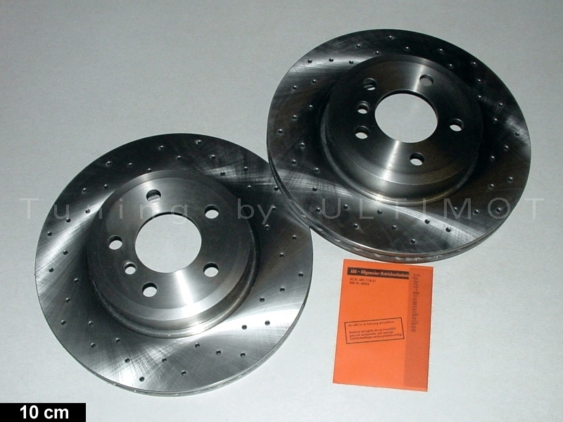 Bremsscheiben als gelochte Sportversion mit ABE innenbelüftet