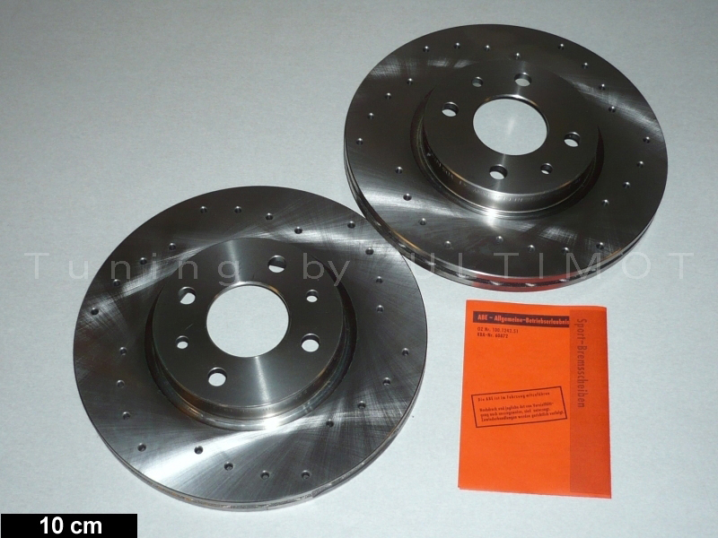 Bremsscheiben als gelochte Sportversion mit ABE innenbelüftet