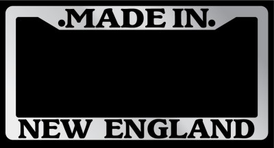 "Made in New England" Chrome license plate frame made from high impact platable ABS. Covered with color vinyl printing.
