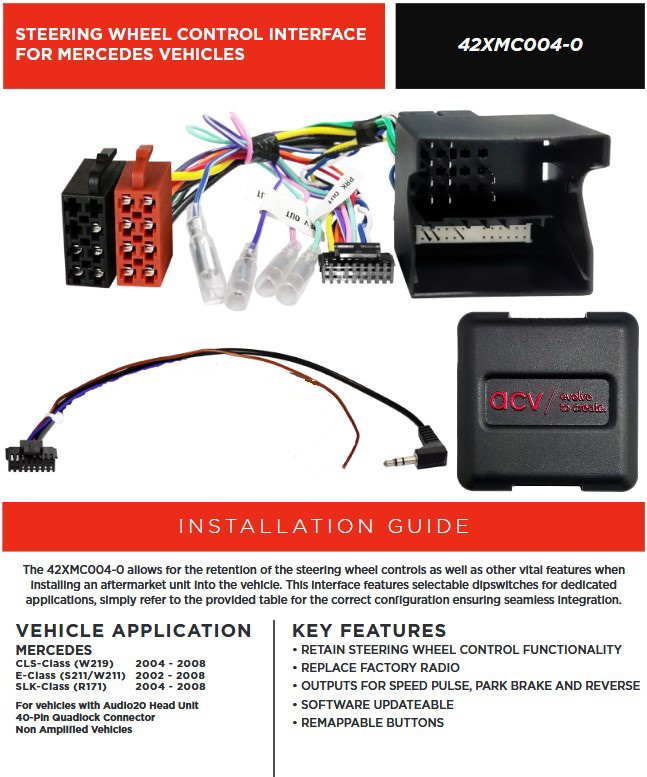 - Der Adapter passt an die Lenkradanschlüsse von 1- oder 2-DIN Nachrüstradios von Alpine, JVC, Kenwood, Pioneer, Sony, Xzent und Zenec.