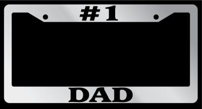 "#1 Dad" Chrome license plate frame made from high impact platable ABS. Covered with color vinyl printing.