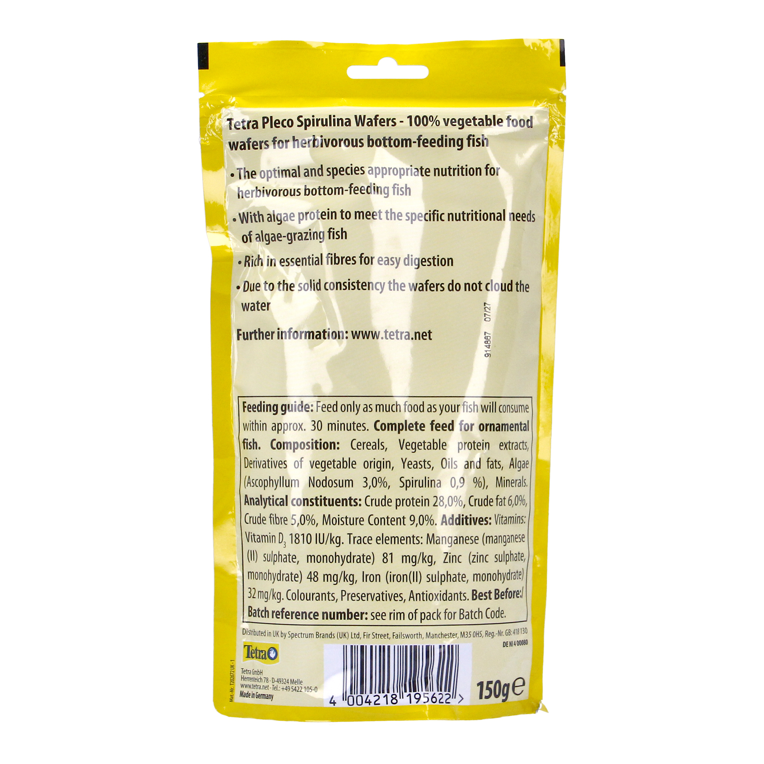 Tetra Pleco Multi Wafers are specially designed for large herbivorous bottom-feeding fish, providing complete nutrition for a healthy and long life. These 2-in-1 wafers combine concentrated algae and Omega-3 to support your fish's immune system while being rich in essential fibres to promote digestion.