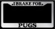 Chrome License Plate Frame "I Brake For Pugs" Auto Accessory Novelty