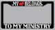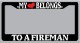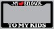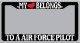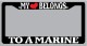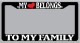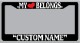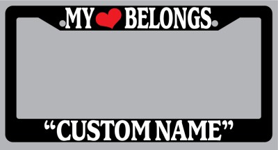My Heart Belongs To "Custom Name" Black license plate frame made from high impact ABS plastic, covered with color vinyl printing. Let Us know what you want your frame to say and we will put it on there.