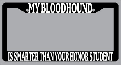Black License Plate Frame "My Bloodhound Is Smarter Than Your Honor Student"