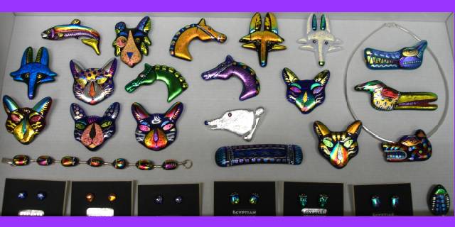 Essential GlassWorks Dichroic Glass Cat pendant and pin
