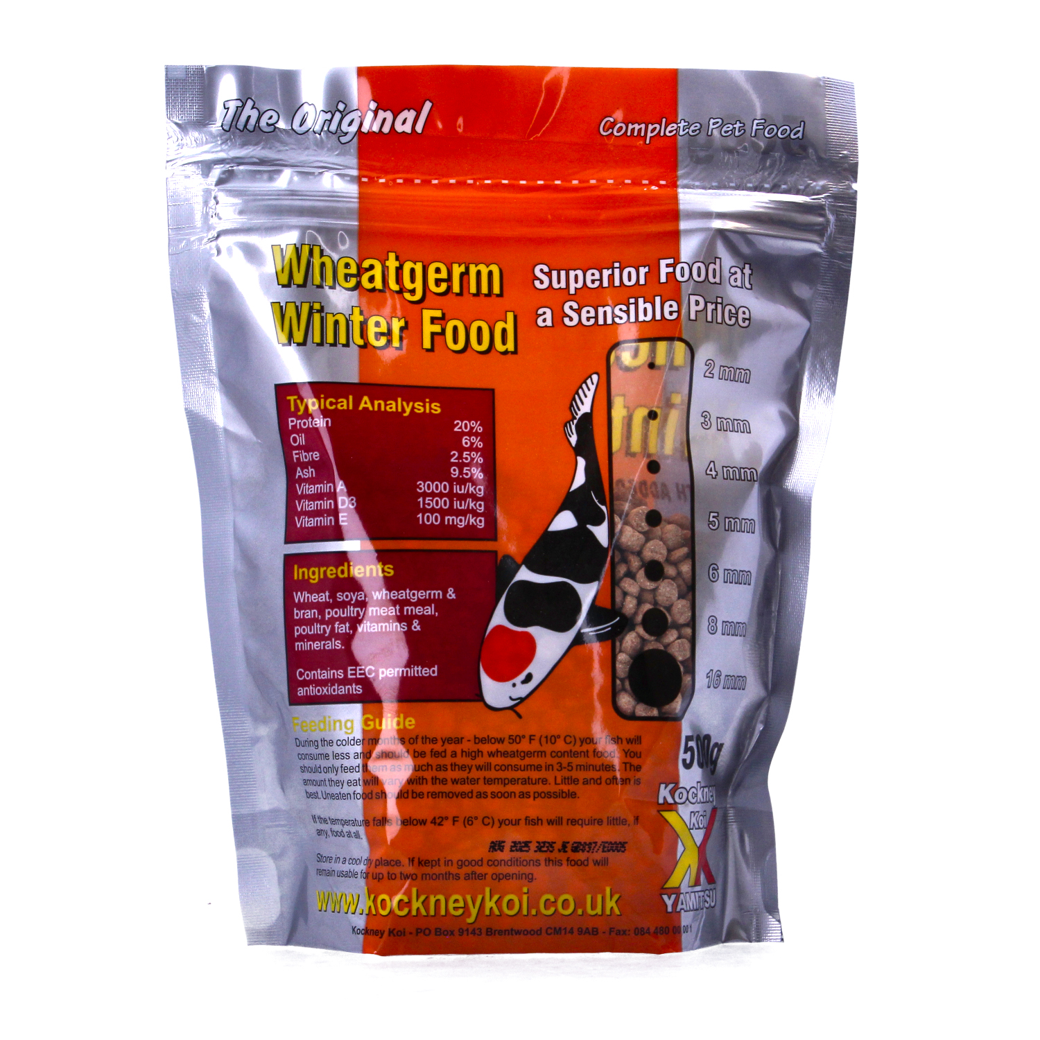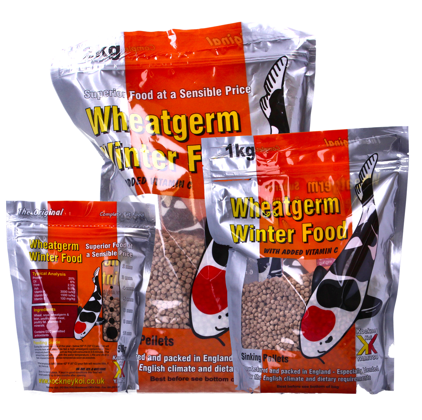 Yamitsu Kockney Koi Wheatgerm Winter Sinking Pellets offer a complete, low-protein feed specifically developed for koi and pond fish during the colder months. This sinking version of the popular floating pellet is formulated to suit slower metabolisms, helping maintain fish health when temperatures drop and digestion slows.