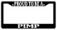 Proud To Be A Pimp Black license plate frame made from high impact ABS plastic, covered with color vinyl printing.