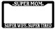 Super Mom, Super Wife, Super Tired Black license plate frame made from high impact ABS plastic, covered with color vinyl printing.