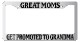 We do all kinds of different products. Check out our eBay store! We can do these frames for any design saying. We are showing 24 in this ad but we can do all of them. Just send us the name of the design you want. We can also do your custom saying. We also do custom products for businesses, organizations, high schools and fundrasiers. Email us with any questions so that we can create an auction for it!Please let us know how we do! We are here to make you the customer happy and would like to hear from you. If you leave us good feedback, we will be more than happy to leave you good feedback. Neutral feedback is the same as negative feedback to us, if a problem does occur we would like to do everything in our power to make it right and deserve the 5 star rating! Please do not be afraid to contact us so that we can ressolve any issues. Thanks!Please note that the frame shown above may not be legal in every state and is the responsibility of the buyer too be aware of their personal state law. We are not responsible for any resulting fines or consequences resulting from attaching our frames in a state in which they do not meet state requirements. We are willing to accommodate your needs by changing the design of the frame to accommodate your state regulations. Please contact us through the Ebay message system and we will work with you to fit the design on a frame that meets your states requirements. Included in our picture gallery are example of frames that meet different state requirements to give you an idea of what they look like.