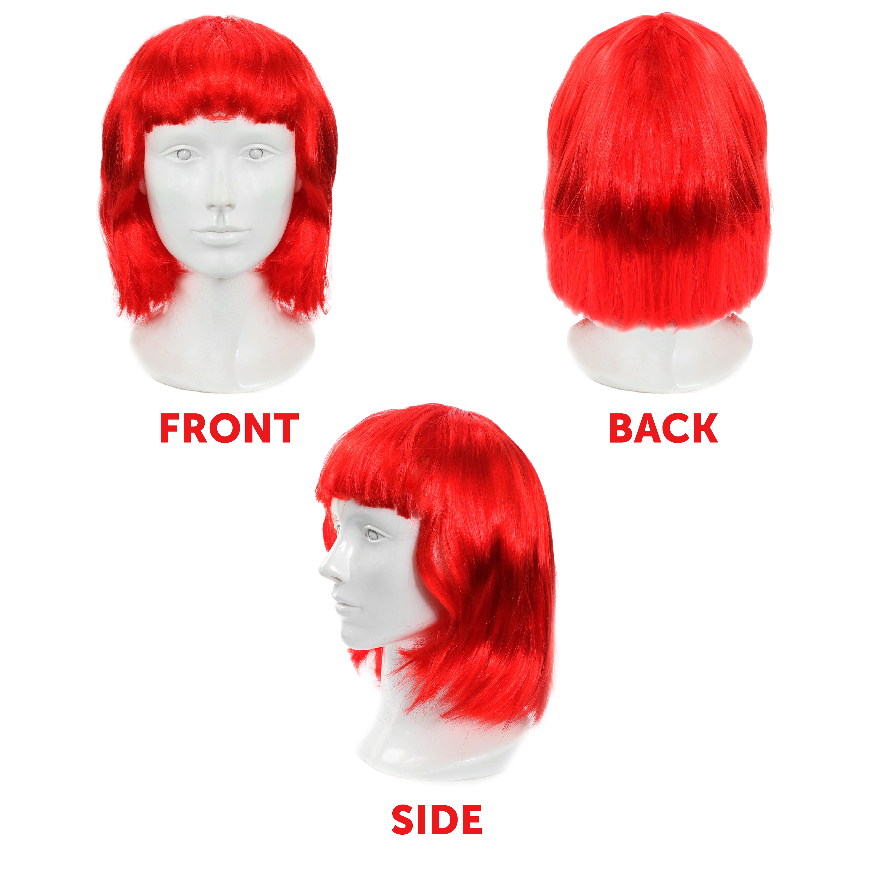AVAILABLE IN MULTIPLE PACKS: Not only do you get an already amazing wig for yourself, if you’re looking to turn heads with your friends, then check out our Red Bob Wigs available in Singles, Packs of 3, Packs of 6, Packs of 12, and a Pack of 24!