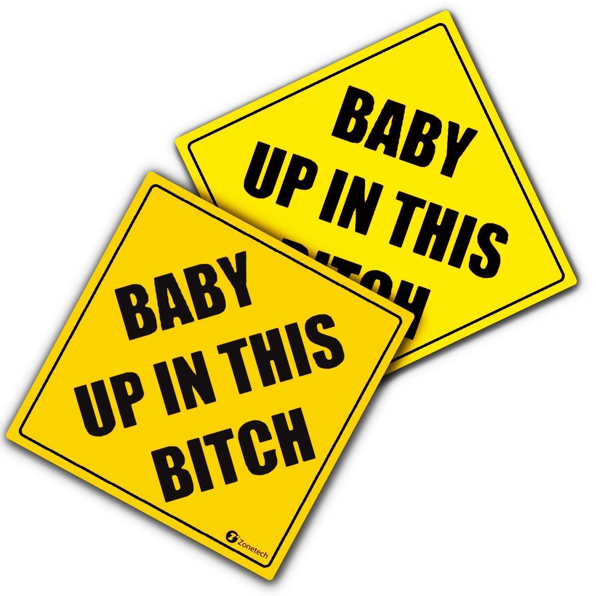 Zone Tech "Baby Up in This Bitch" Vehicle Safety Sticker - 2-Pack Premium Quality Convenient Reflective Baby Up On This Bitch Vehicle Safety Funny Sign Sticker