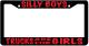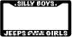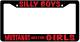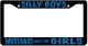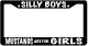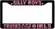 Silly Boys Trucks Are For Girls Black license plate frame made from high impact ABS plastic, covered with color vinyl printing.