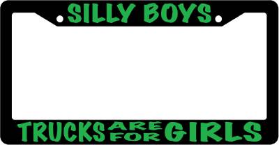 Black License Plate Frame Silly Boys Trucks Are For Girls (Green) Auto