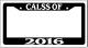 CLASS-OF-2016 Black license plate frame made from high impact ABS plastic, covered with color vinyl printing.