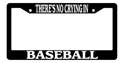There's No Crying In BASEBALL Black license plate frame made from high impact ABS plastic, covered with color vinyl printing.