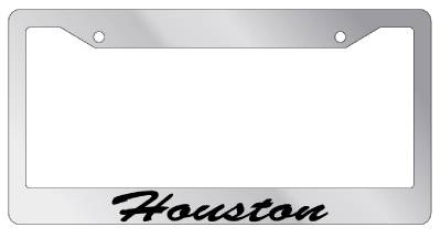 Chrome License Plate Frame CURSIVE Houston Auto Accessory Novelty