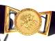 - FEATURES: Bold Gold Tone Medallion on each side of the Arms