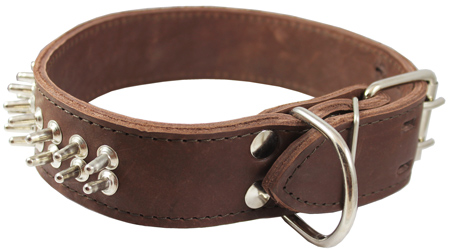 Double-Ply Real Leather Spiked Dog Collar, 1.75" Wide for Large Breeds