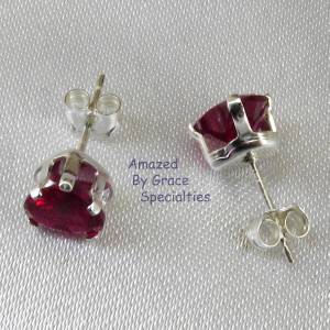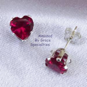 6mm Ruby Red HEART Post Earrings in Sterling Silver