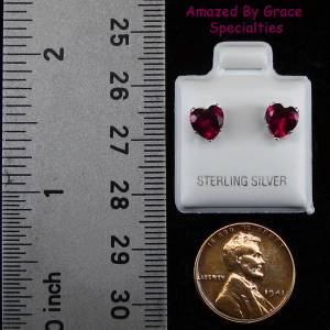 BEAUTIFULLY SHAPED& large enough to be plainly seen, but not so big as to be "in your face"; our 6mm RUBY RED HEART EARRINGSin Sterling Silver settings are quite the fetching accessory. ..and at a great price, too!