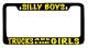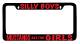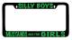 Please note that the frame shown above may not be legal in every state and is the responsibility of the buyer too be aware of their personal state law. We are not responsible for any resulting fines or consequences resulting from attaching our frames in a state in which they do not meet state requirements. We are willing to accommodate your needs by changing the design of the frame to accommodate your state regulations. Please contact us through the Ebay message system and we will work with you to fit the design on a frame that meets your states requirements. Included in our picture gallery are example of frames that meet different state requirements to give you an idea of what they look like.