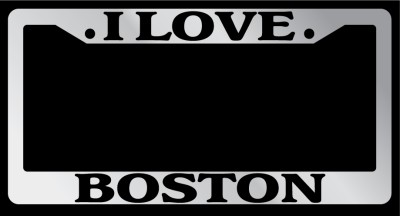 Chrome Metal license plate frame I LOVE BOSTON made from high quality steel plated in chrome, covered with premium outdoor color vinyl printing with a minimum life expectancy of 7 year. The vinyl is designed to stand up to the elements and will not peel off in car washes or other elements your car may be subjected to.