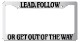 Chrome Metal license plate frame IF YOUR NOT LEAD DOG THE VIEW NEVER CHANGES made from high quality steel plated in chrome, covered with premium outdoor color vinyl printing with a minimum life expectancy of 7 year. The vinyl is designed to stand up to the elements and will not peel off in car washes or other elements your car may be subjected to.