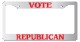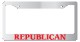 Chrome Metal license plate frame VOTE REPUBLICAN (RED) made from high quality steel plated in chrome, covered with premium outdoor color vinyl printing with a minimum life expectancy of 7 year. The vinyl is designed to stand up to the elements and will not peel off in car washes or other elements your car may be subjected to.