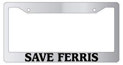 Chrome Metal license plate frame SAVE FERRIS made from high quality steel plated in chrome, covered with premium outdoor color vinyl printing with a minimum life expectancy of 7 year. The vinyl is designed to stand up to the elements and will not peel off in car washes or other elements your car may be subjected to.