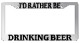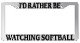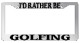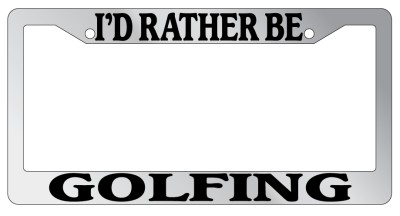 Chrome Metal license plate frame I'D RATHER BE GOLFING made from high quality steel plated in chrome, covered with premium outdoor color vinyl printing with a minimum life expectancy of 7 year. The vinyl is designed to stand up to the elements and will not peel off in car washes or other elements your car may be subjected to.