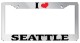 Chrome Metal license plate frame I HEART SEATTLE made from high quality steel plated in chrome, covered with premium outdoor color vinyl printing with a minimum life expectancy of 7 year. The vinyl is designed to stand up to the elements and will not peel off in car washes or other elements your car may be subjected to.