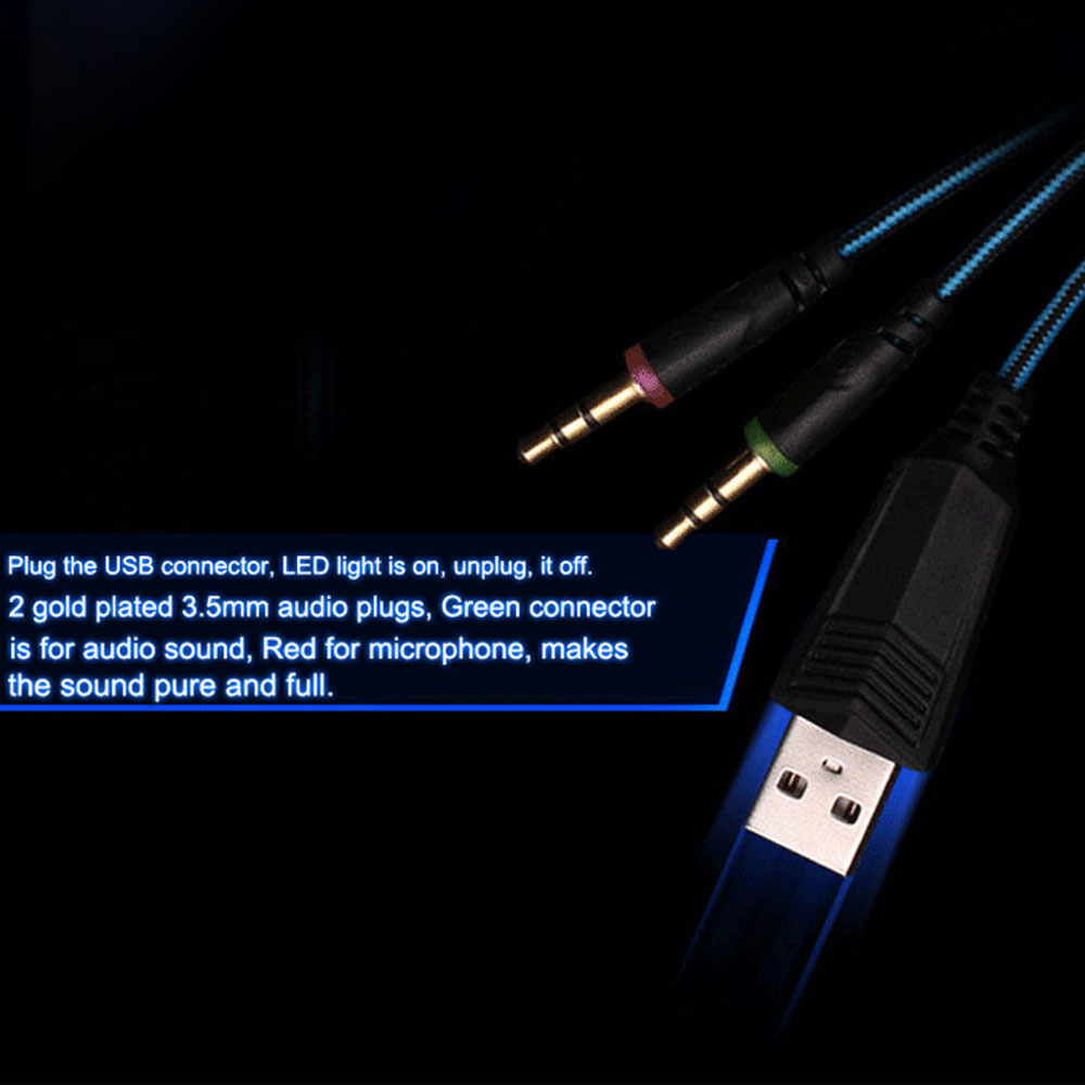 comfortable for long time wear. - Glaring LED lights are designed on the earcups and microphone, highlighting the atmosphere of the game.